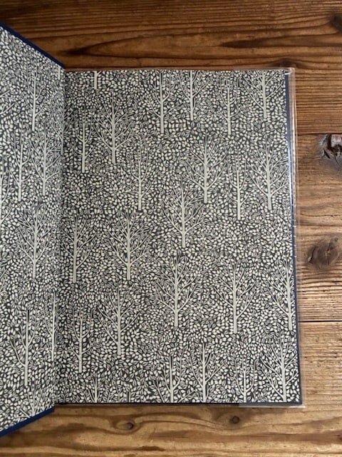ウィリアム・モリスを彷彿とさせる色彩と絵柄が美しく、布貼り装丁の美しさも魅力的。