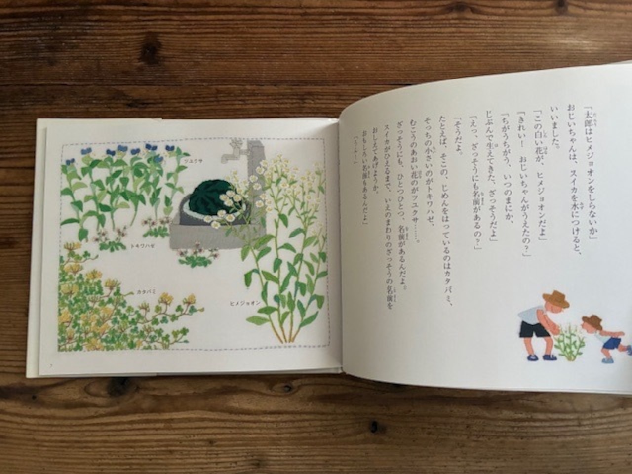 さらに家の周りや庭に咲いた身近な草花に興味を持ち、おじいちゃんと観察していきます。